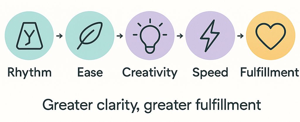As ease grows, creativity unlocks. As creativity flows, decision-making accelerates. A deeper sense of fulfillment naturally follows.